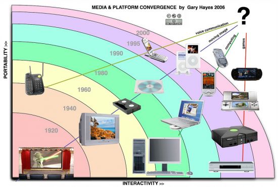 大約從 1995 年左右,就陸續(xù)有人在討論所謂“數(shù)位匯流”,在不同的使用情境之下,我們還是會(huì)需要很不一樣的數(shù)位裝置 — 光是螢?zāi)淮笮【陀泻枚喾N選項(xiàng),音響效果、攝影機(jī),都需要不同的配套。