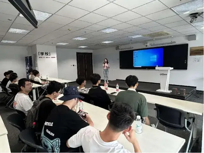 參觀的最后,大華股份講解員為學員們帶來了一場校園智慧管理的主題講座。講解員從學校現狀出發,深入淺出地分析了學校的管理和安防面臨的技術革新,并詳細介紹了大華在算法優化、邊緣計算、物聯網集成等方面的技術突破,并強調:“未來的安防將更加依賴于智能化,我們需要不斷探索新的算法模型,提升數據處理效率,同時保證用戶隱私和數據安全。”