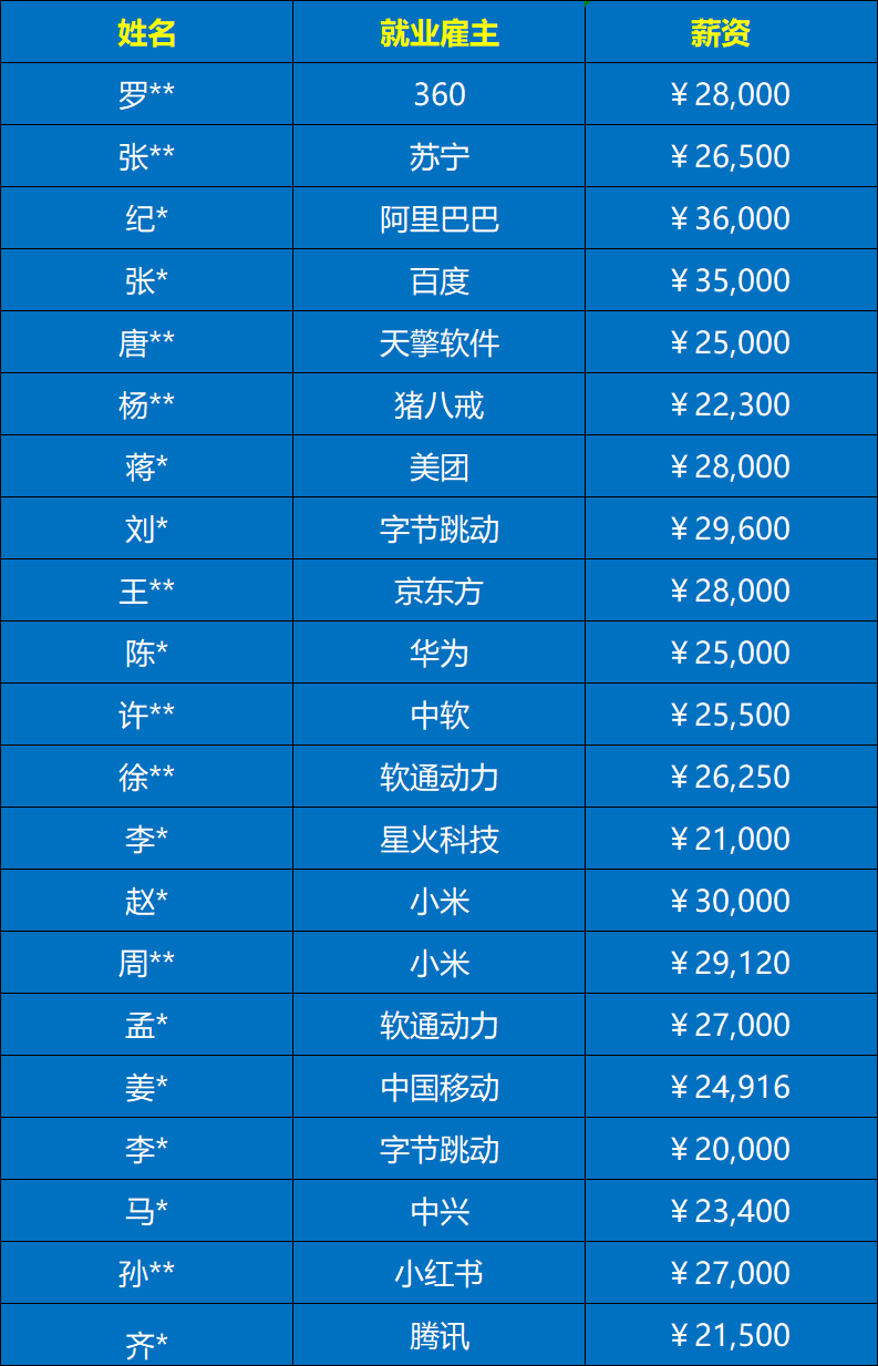 近期學員就業情況: