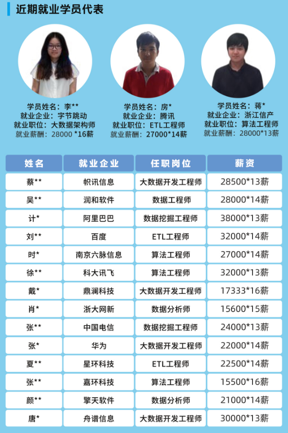 薪資高。培優菁英班課程,學的過程中,可以依次對應企業的大數據采集/應用工程師、大數據ETL/數倉工程師、大數據架構/挖掘/清洗/治理/工程師。且薪資在IT各門類對比中處于上層。
